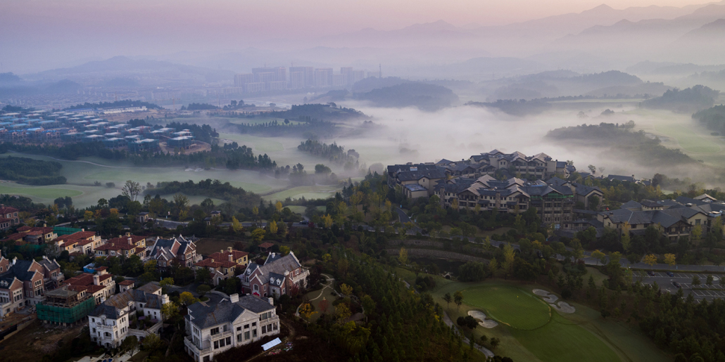 位于浙江安吉,18洞山地景觀高爾夫球場,與茶園,山地等自然景觀融為一體。